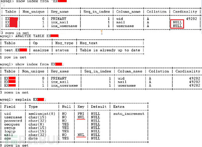推荐使用Navicat 选择表打开表讯息,选择DDL选项卡,可以清楚看到该表的sql,有无索引一目了然,然后右击数据库名选择它的console功能,来快速添加索引。