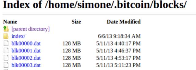 用于存储区块链数据的普通文件以 blk00000.dat , blk00001.dat 文件名格式组成,如图2所示,其中 index 目录存储用于存储区块元数据。