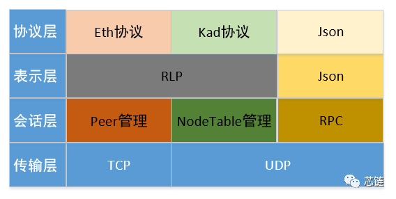 以太坊所有网络功能如下图所示: 所有网络功能建立在以太网的传输层之上,TCP 及 UDP 均有应用。