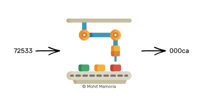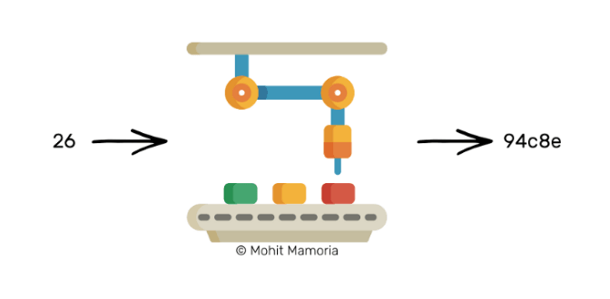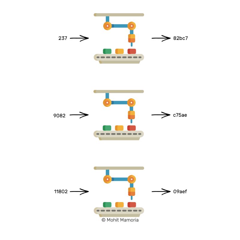 这台机器被称为“哈希函数”,但是为了方便理解,我们暂且称它为“魔法机器”。
