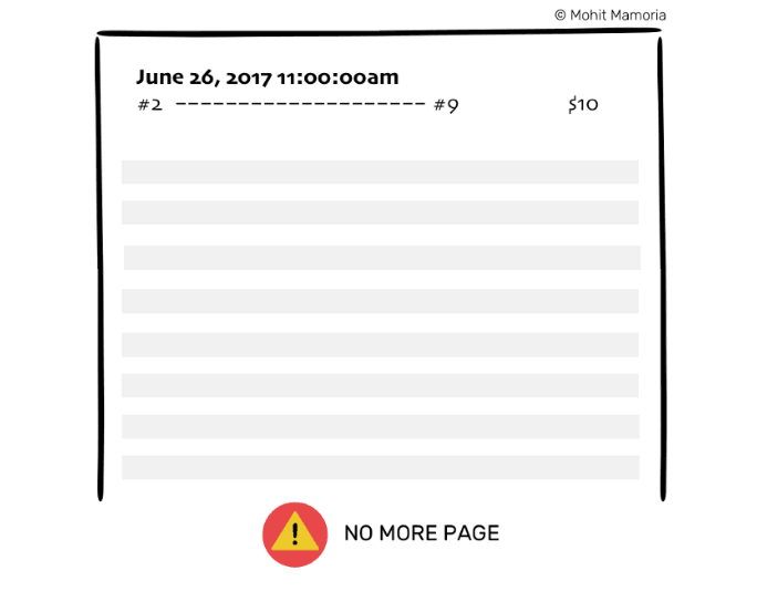 记录将继续进行,直到所有人都用完当前页面上的空间。假设一个页面的空间只能记录十个交易,当第十个交易完成后,每个人的空间也都用完了。