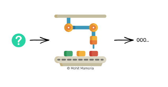 如果我给你一个数字,比如说72533,并且问你,“把这个数字输进机器,是否输出了一个以三个0开头的单词?”,完成这个过程你觉得有多困难?