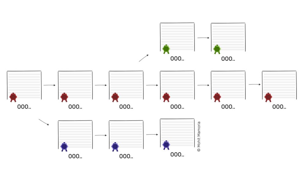 有了这个小技巧,我们就能确保每一页都依赖于它的前一页。 因此,如果有人要修改一个历史页面,那么他必须改变所有页面的内容和加密数字,以保持区块链上的一致性。