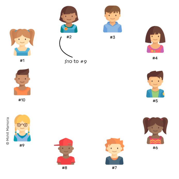 为了完成交易,2号发表声明告诉大家,“我想转10美元给9号。收到消息的人就在自己的空白页上进行交易记录。”