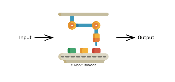 想象一台由厚厚的墙包围的机器。如果从左边给机器发送一个非空的盒子,它会“吐出”一个包含其他内容的盒子。