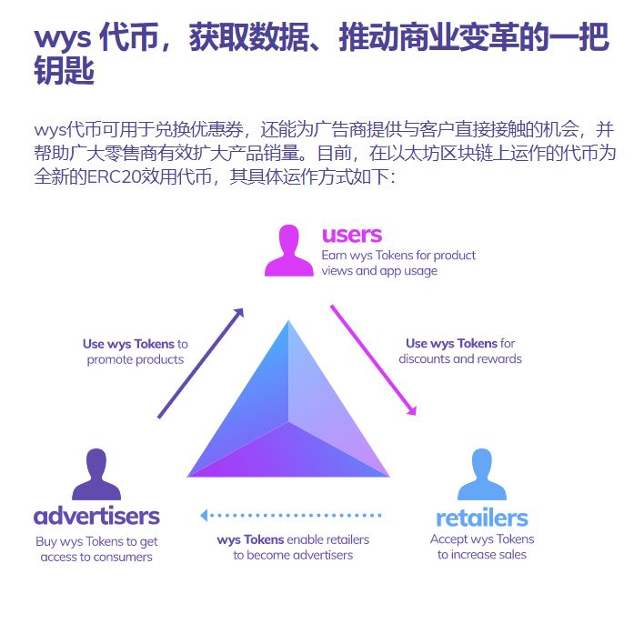 wysker应用程序能让用户比以往更快捷地锁定产品,且通过浏览产品信息即可获取wys代币。而用户获取的wys代币可用于兑换优惠券,因此具有一定的交易价值。此外,wysker应用程序生成的数据还可进行交易,便于消费者与供应商直接进行对接,并推动基于区块链技术的移动购物的发展,从而促进电子商务的升级与创新。