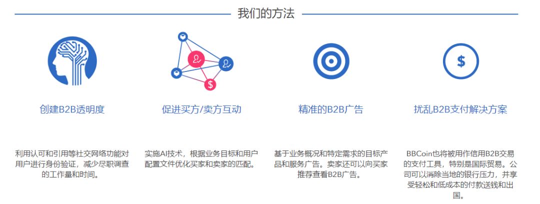 TRADOVE是一个B2B交易平台,利用认可和引用等社交网络功能对用户进行身份验证,减少尽职调查的工作量和时间。BBCoin也将被用作信用B2B交易的支付工具,特别是国际贸易。公司可以消除当地的银行压力,并享受轻松和低成本的付款送钱和出国。