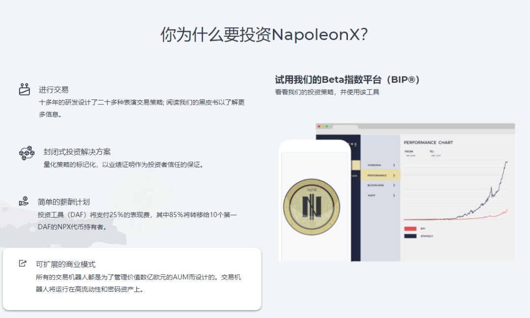 napoleonx是第一个加密资产管理者试点交易机器人,创建世界上第一个密码资产管理器,为加密世界和设计加密投资解决方案的新Blackrock,将提供一个常规的收益率,同时降低波动性。