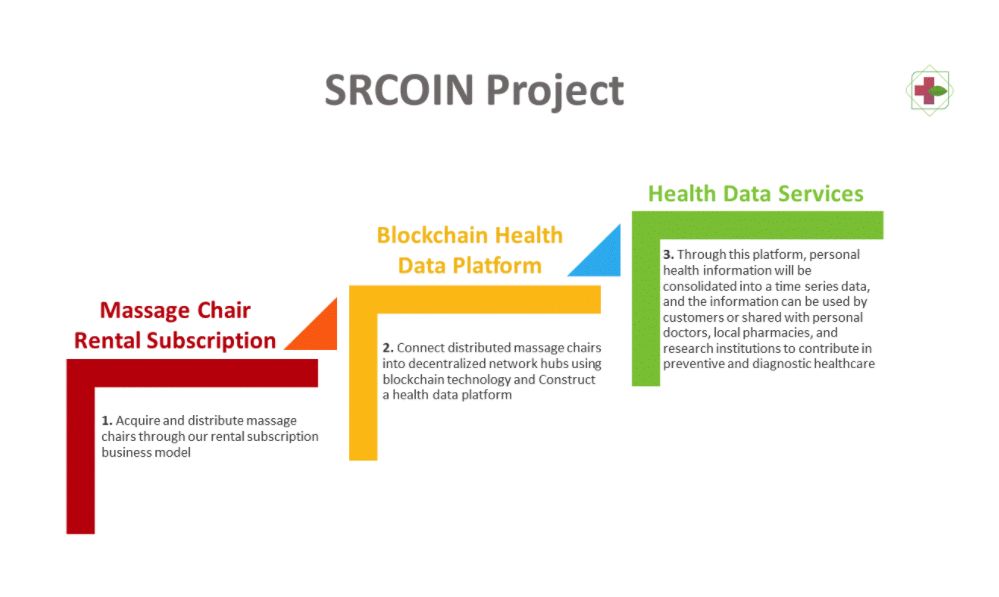 SRCoin是一个分散的健康信息平台,使用区块链技术,分布式和订阅式按摩椅连接到分散式网络中心,构建健康数据平台,为患者,医疗机构和研究机构提供有用的健康信息。
