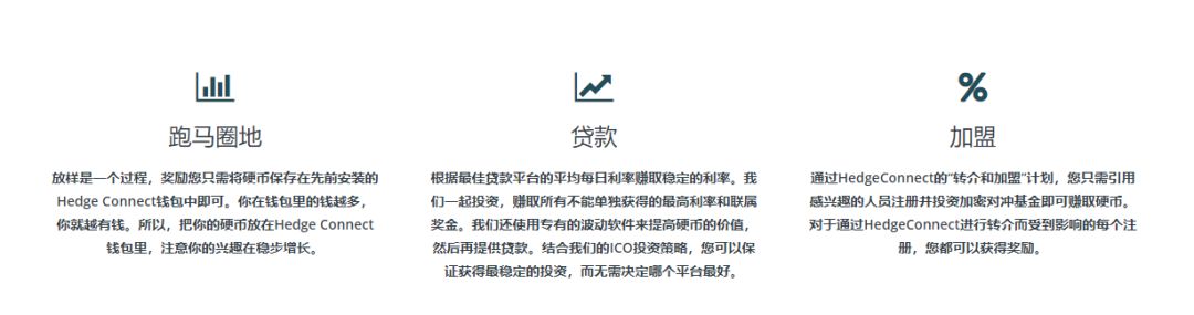 Hedgeconnect是世界上第一个加密对冲基金(类似于P2P理财平台),一个最好的ICO和贷款平台的投资门户网站。通过HEDGECONNECT,您是成千上万的小投资者中的一员,他们联合起来赚取最高利率和奖金。大量的投资组合可以为您减轻风险,因为您的投资分布在数十个平台上。