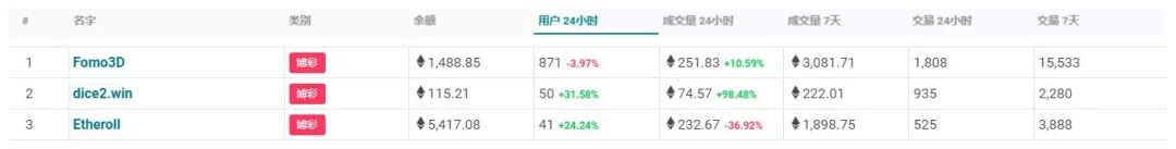 24小时交易量位居第三的dice2.win,也是后起之秀。虽然数据表现不如Fomo3D,上线初期经历了两个月左右的平稳增长,但在近期呈井喷式爆发也同样十分抢眼。