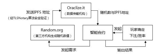 系统掷出的点数是通过Random.org随机生成的,并依靠Oraclize.it服务将随机数字安全地输送到区块链上,最后通过Etheroll的智能合约自动计算从Random.org得出的随机生成数与玩家设定数对比的结果来判定游戏输赢。