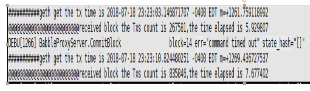 上图是我们通过4节点测试后取得的成功,我们可以看到其中一个块是包含了267581笔交易,用时大概是6秒左右,另一个块包含了835846笔交易,由此可见,在有限的节点测试环境中,达成一次共识需要的gossip次数是有限的,所以,增加单次网络IO(gossip)的数据负载(交易数量),产块时间间隔并没有受到严重影响,平均产块时间3-5秒。但是块中的交易数量得到了质的提高。