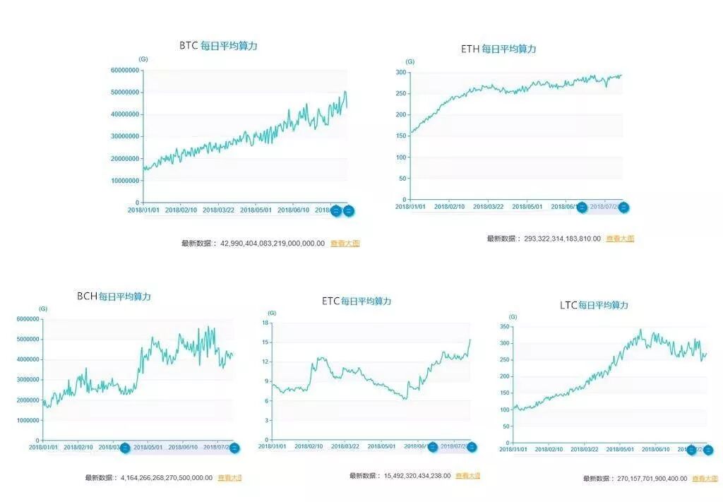 ETC则在社区通过了舍弃“难度炸弹”这个设计,把自己推向了纯POW机制的道路,从此和ETH分道扬镳。至于,BCH和LTC的算力都出现了不同程度的下滑,其中BCH因为特殊的难度机制调整,一部分矿池会在BCH和BTC进行算力切换,造成算力的波动较大。