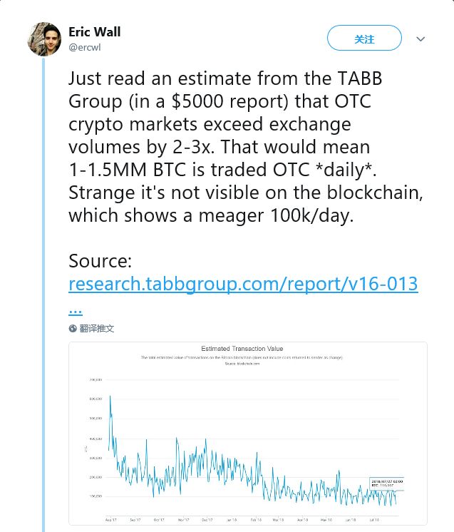 根据TABB的报告,BTC的场外交易额已经超过二级市场场内的两倍,甚至三倍。