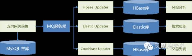 当交易量上来后,需要考虑交易表的分表分库的事情。分表分库有两个策略,按照流水号或者交易主体id来走。后者可以支持按用户来获取交易记录。我们用的是前者。后者可以走elastic,确保数据库专用。风控,信用和统计所需要的数据,通过MQ同步到Hbase里面。作为支付系统最有价值的数据,在存储上做到专库专用,无可厚非,毕竟存储成本还是廉价的。