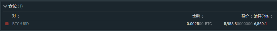 点击Margin Sell后,就杠杆卖出了0.0025个BTC。此时仓位栏目就会显示: