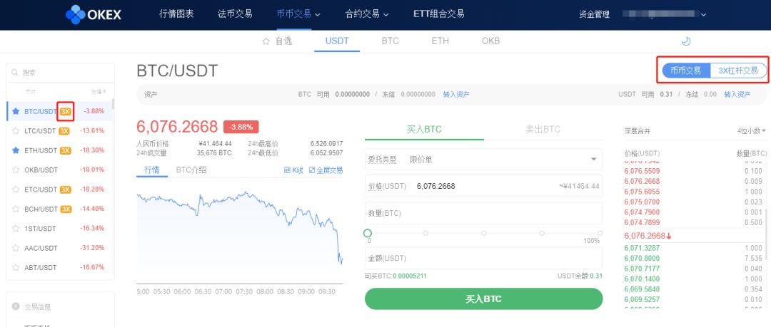 3倍杠杆交易所使用的保证金,是币币杠杆交易钱包中,该交易对的两种数字货币的总市值。