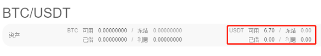 这6.7个USDT,仅仅能用于交易BTC/USDT这一交易对。虽然其他的交易对也使用USDT计价,但它们是隔离的。可以理解为,每个交易对都是一个独立的钱包。