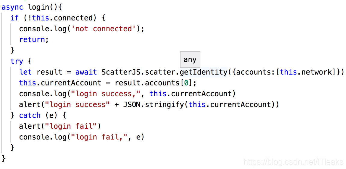 hello-eos-scatter是基于React和Scatterjs的网页前端,能够非常方便的使用scatter连接用户,并执行 eos的智能合约。 大致代码如下