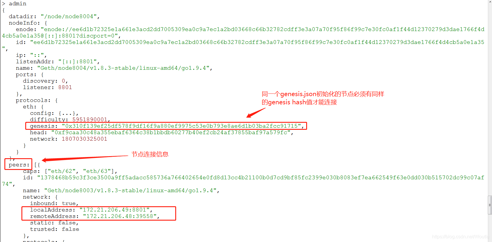 Node的信息查看:(通过ipc在console下面用admin就可以查看,如下信息,)